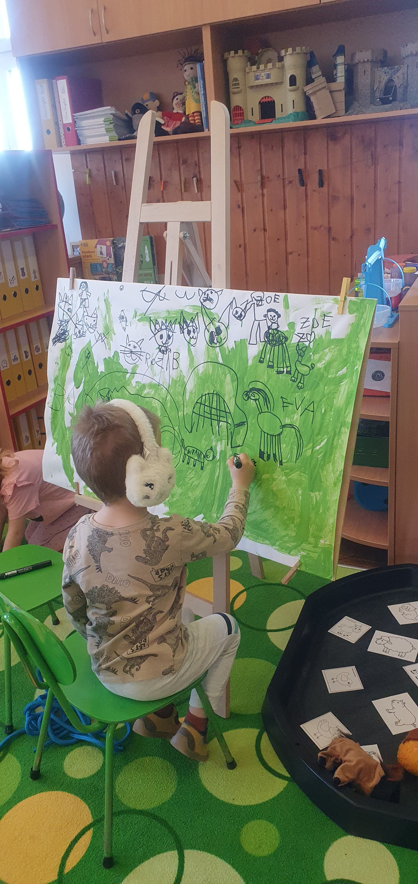 Téma dětem blízké, vždyť jsou to taky "mláďátka". Je pravda, že se nám občas plete jehňátko, selátko, telátko, fenka, klisna... ale od toho tady jsme, abychom si společně rozšiřovali obzory :-) Děkujeme paní Lence, mamince Barunky, za možnost navšívit jejich minifarmičku domácích zvířátek a za její pohostinnost. Jsme na vesnici, tak jsme těch zvířat viděli docela dost. A která jsme neviděli, tak jsme si o nich aspoň povídali, či si je nakreslili.