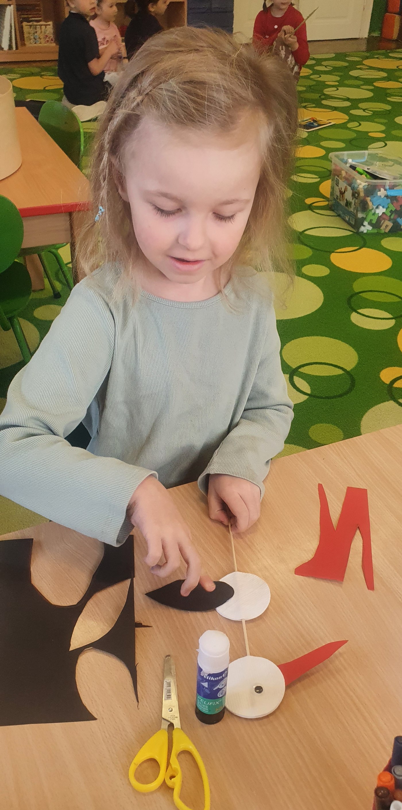 Jaro je tady a my vyhlížíme přílet ptáků z teplých krajin. Čáp z Bílých Poličan je ještě někde na cestách, tak jsme si pár čápíků vyrobili a povídali si o nich, abychom ho přivolali. Kromě toho jsme také byli v pondělí na další lekci plavání, v úterý v dětské knihovně v Hořicích, ve čtvrtek v ZUŠce ve Dvoře Králové nad Labem na představení dramatického oboru , který sehrál pro děti pohádku Princezna ze mlejna. Prostě žijeme ve školce naplno! Věříme, že děti doma své zážitky vypravují, snažíme se o jejich pestrost a rozmanitost :-)